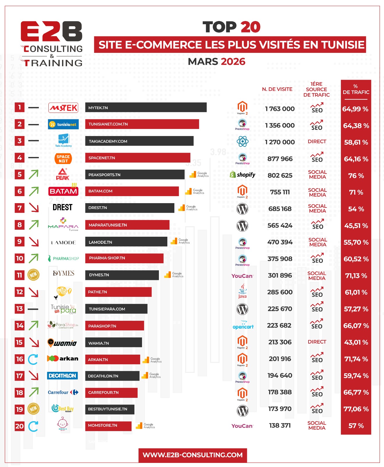Top 20 des sites E-commerce les plus visités en Tunisie : Analyse exclusive – Mars 2026